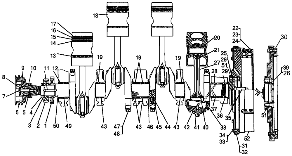 Кривошипно-шатунный механизм дизеля на Т10М / Б10М