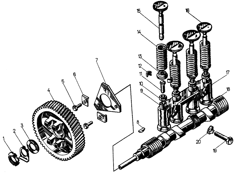 Механизм газораспределения пускового двигателя на Т10М / Б10М
