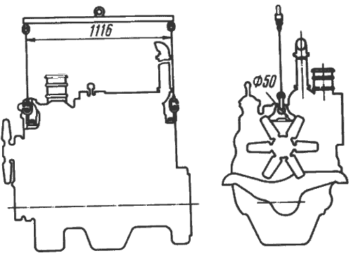 Рис. 27. Схема строповки дизеля