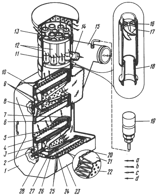 Сменные матерчатые чехлы 26 (см. рис. 14) предохранительных ФП промывают в растворах, указанных выше.
