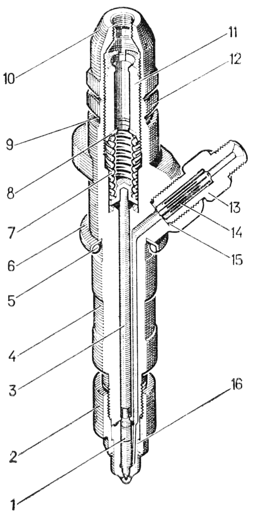 Вложите распылитель 16 ( см. рис. 149 ) с иглой 1 в гайку 2 и наверните гайку на-корпус 4 форсунки.