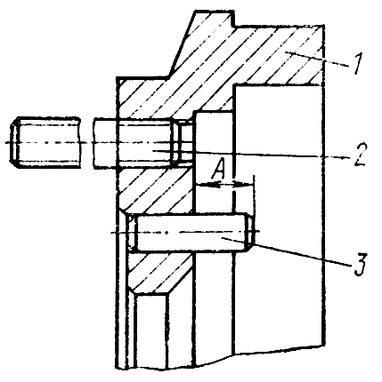 Запрессуйте в лабиринт 1 (рис. 244) три штифта 3, выдержав размер А — (14±0,2) мм. Смажьте вворачиваемую резьбовую часть шпилек 2 железным густотертым суриком и вверните шесть шпилек в лабиринт. Момент затяжки шпилек 40...70 Н-м. (4...7 кгс-м.).