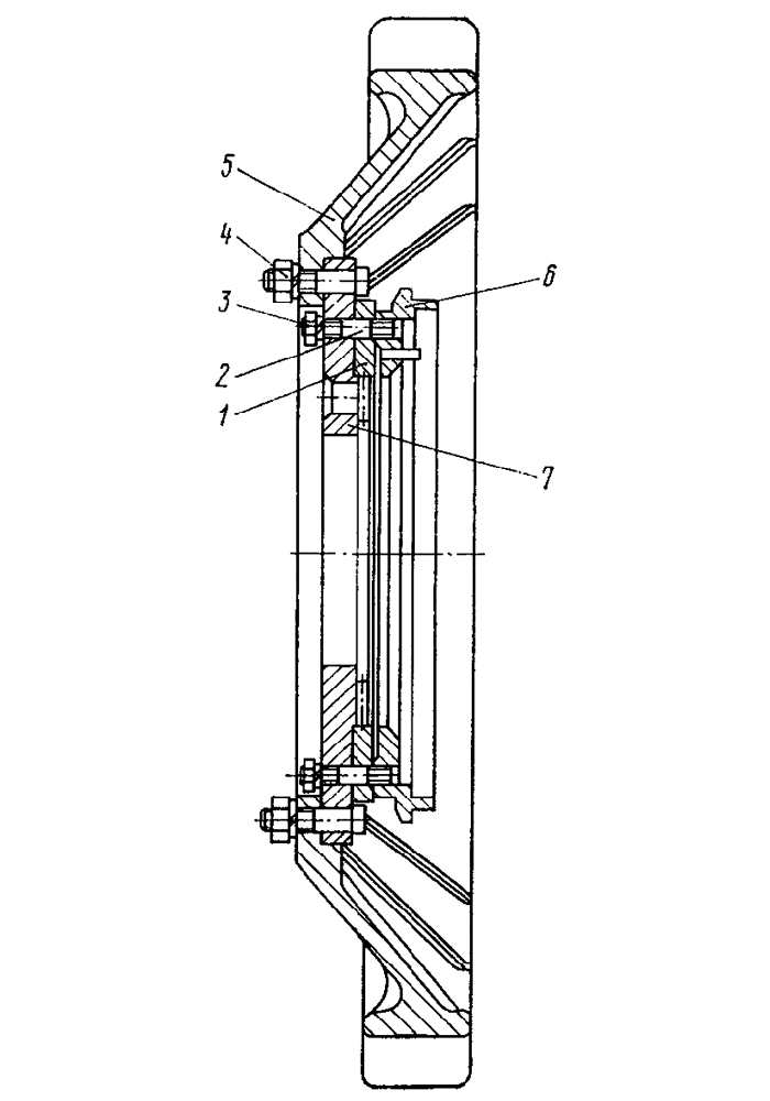 Отверните гайки 4 ( рис. 241 ) с болтов крепления венца 5 ведущего колеса. Снимите венец с фланца 7. Отверните гайки 3 со шпилек 2 крепления лабиринта 6 к фланцу и разъедините фланец, проставку 1 и лабиринт.