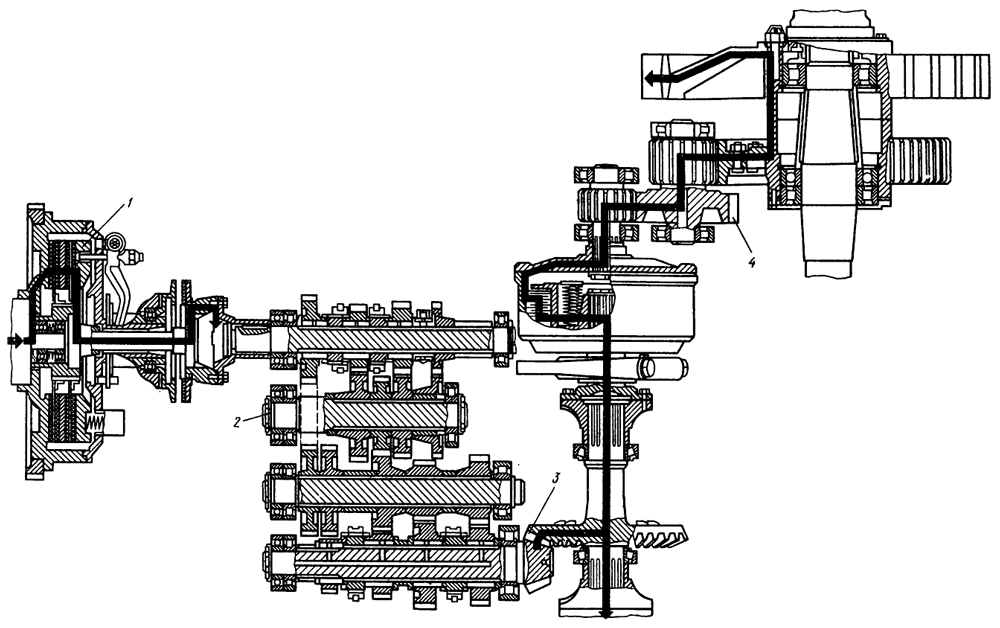 4 — трубка подвода масла для смазывания главной передачи,